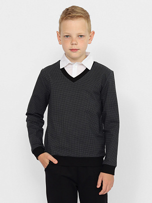 Водолазка для девочки, из трикотажа с эластаном, с длинным рукавом, горловина и верх рукава с декоративной сборкой.