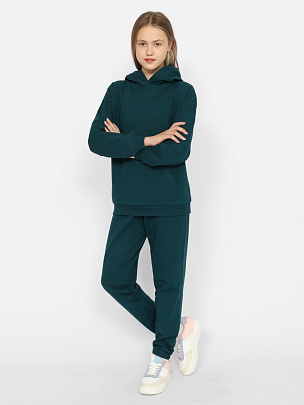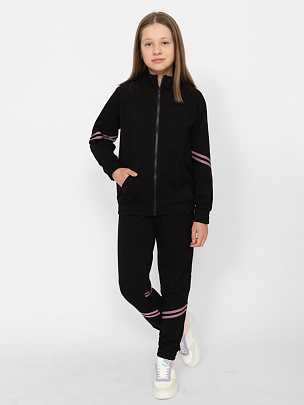Костюм спортивный из плотного трикотажа, для девочки.Куртка с капюшоном, на молнии, карманы-кенгуру. Низ брючин на манжете.