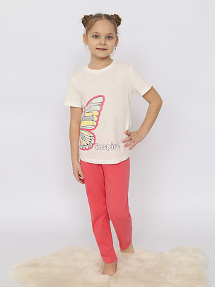 Футболка с ярким блестящим принтом для девочки, выполненная из мягкого хлопкового трикотажа, который прост в уходе, позволяет телу дышать и комфортен в носке. Актуальный крой оверсайз с заниженной линией плеча не сковывает движения, позволяя ребенку быть активным. Модель дополнена круглым вырезом горловины и свободными рукавами длиной до локтя.