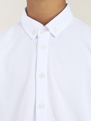 Рубашка полуприталенного силуэта, с длинным рукавом и притачными манжетами. Воротник обтачной с притачной стойкой и пуговицами. Застежка центральная на петли и пуговицы.