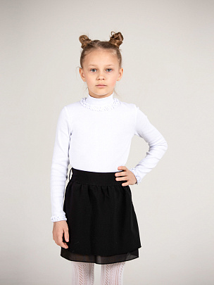 Водолазка из кашкорсе с эластаном. Модель с длинными рукавами и воротником-стойкой. По шву притачивания воротника и шву подшивки низа рукава эластичной строчкой настрочены рюши из основного полотна. Края рюши обработаны микрооверлоком.