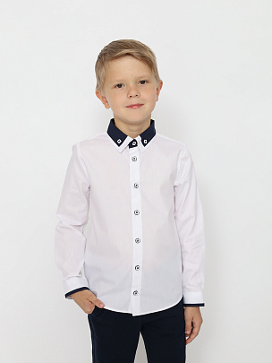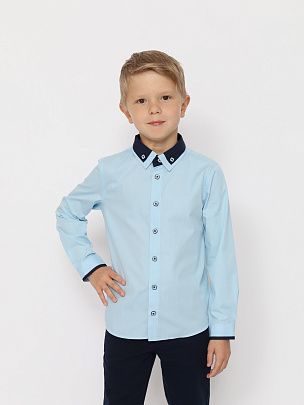 Рубашка-поло для мальчика. Рукава с манжетами. Модель с длинными рукавами и отложным воротником. Спереди застежка на пуговицы.