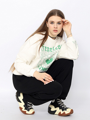 Молодежная толстовка oversize c длинными рукавами и креативным принтом спереди и на рукаве (всегда оставайся верной и бесстрашной).