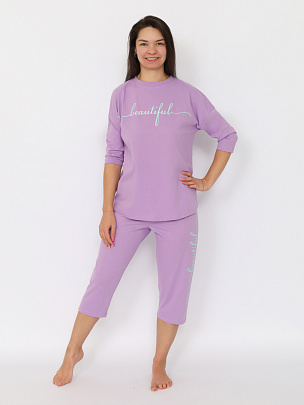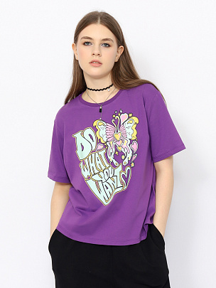 Футболка женская, из тонкого хлопкового трикотажа, украшена принтом.